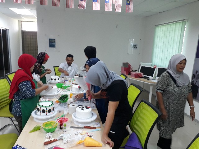 04 November 2018 | Aktiviti TerkiniPada 03 November 2018 telah berlangsung kursus keusahawanan bakeri dengan kerjasama bersama dengan Puan Juliana (Cikgu roti Malaysia). Kursus ini mengajar peserta dalam membuat atau menghias kek. Peserta juga berkesempatan untuk menghias kek dengan hasil tangan sendiri yang bertemakan Selamat hari jadi.